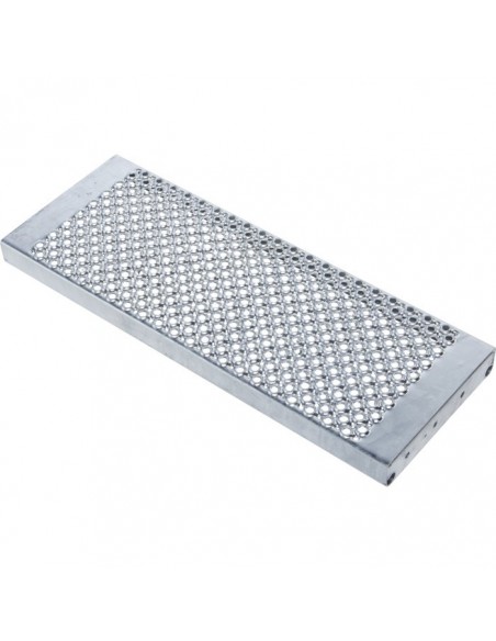 A lépcsők és a dobogó bevonata alapfelszerelésben bordázott alumíniumból (R10). Választható acélrácsos (R12) és perforált acéllemezes (R13) kivitelben is a nagyobb csúszásbiztonság érdekében.