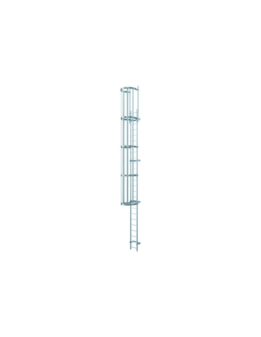 A következőkben felsorolt egyszakaszos berendezések árai a következőképpen kerültek kiszámításra: falitartó U-alakú, 200 mm merev, kétoldali, egyenes rögzítésű kiszállószár, hátvédő kosárral együtt a DIN 18 799-1 szerint. Az ettől eltérő követelményekhez kérem, használja a tűzlétra tervezési programunkat.Az 58148, 58248, 58348 és az 58448 cikkszámú rögzített létrarendszerek nem tartalmazzák a hátvédő kengyeleket és a hátvédő korlátrudakat.