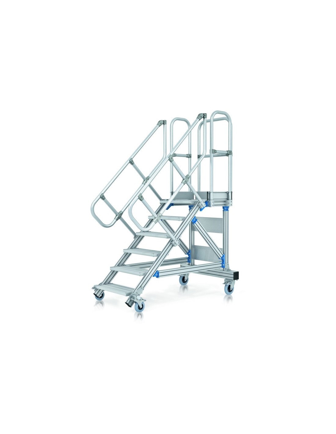 ZARGES Gurulós, dobogós lépcső kétoldali kapaszkodóval és körbefutó korláttal 2