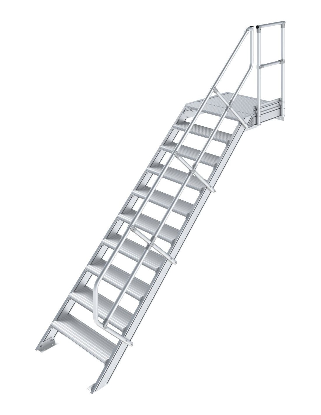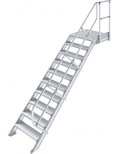 Robusztus alumíniumlépcső ajtók vagy közbenső szintek biztonságos megközelítéséhez, az EN ISO 14122 szabványnak megfelelően.