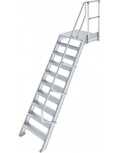 Robusztus alumíniumlépcső ajtók vagy közbenső szintek biztonságos megközelítéséhez, az EN ISO 14122 szabványnak megfelelően.