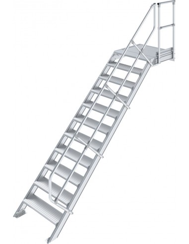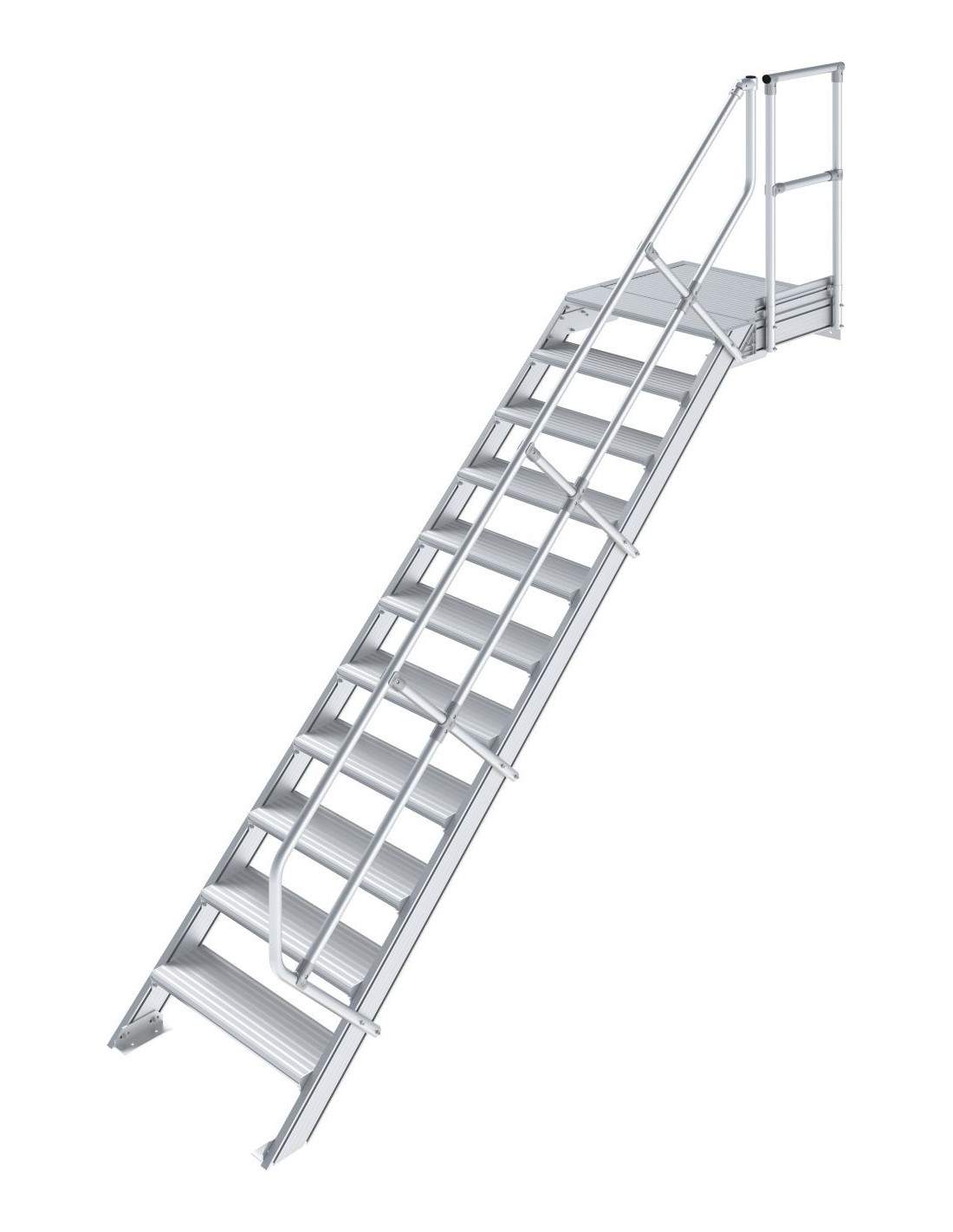 Robusztus alumíniumlépcső ajtók vagy közbenső szintek biztonságos megközelítéséhez, az EN ISO 14122 szabványnak megfelelően.