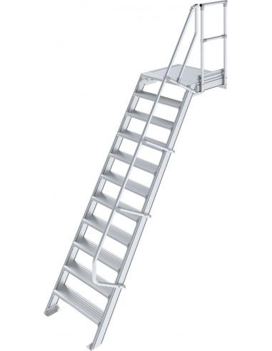 Robusztus alumíniumlépcső ajtók vagy közbenső szintek biztonságos megközelítéséhez, az EN ISO 14122 szabványnak megfelelően.