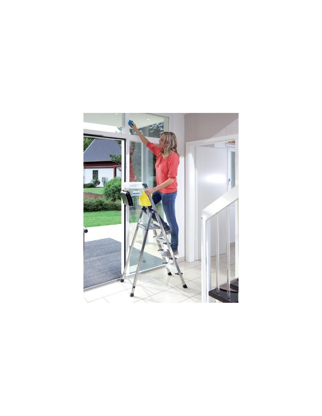Praktikus, sokoldalú, lépcsőfokos állólétra szinte korlátlan tárolási lehetőséggel, vödörtartóval és csúszásmentes dobogóval.