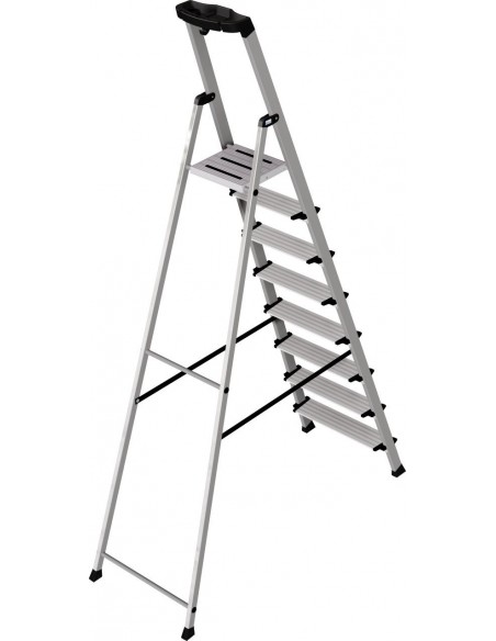 A kényelmes és ergonomikus lépcsőfokos állólétra komfortos munkavégzést tesz lehetővé a 125 mm mély fokoknak és a kábeltartóval ellátott multifunkciós tálcának köszönhetően.
