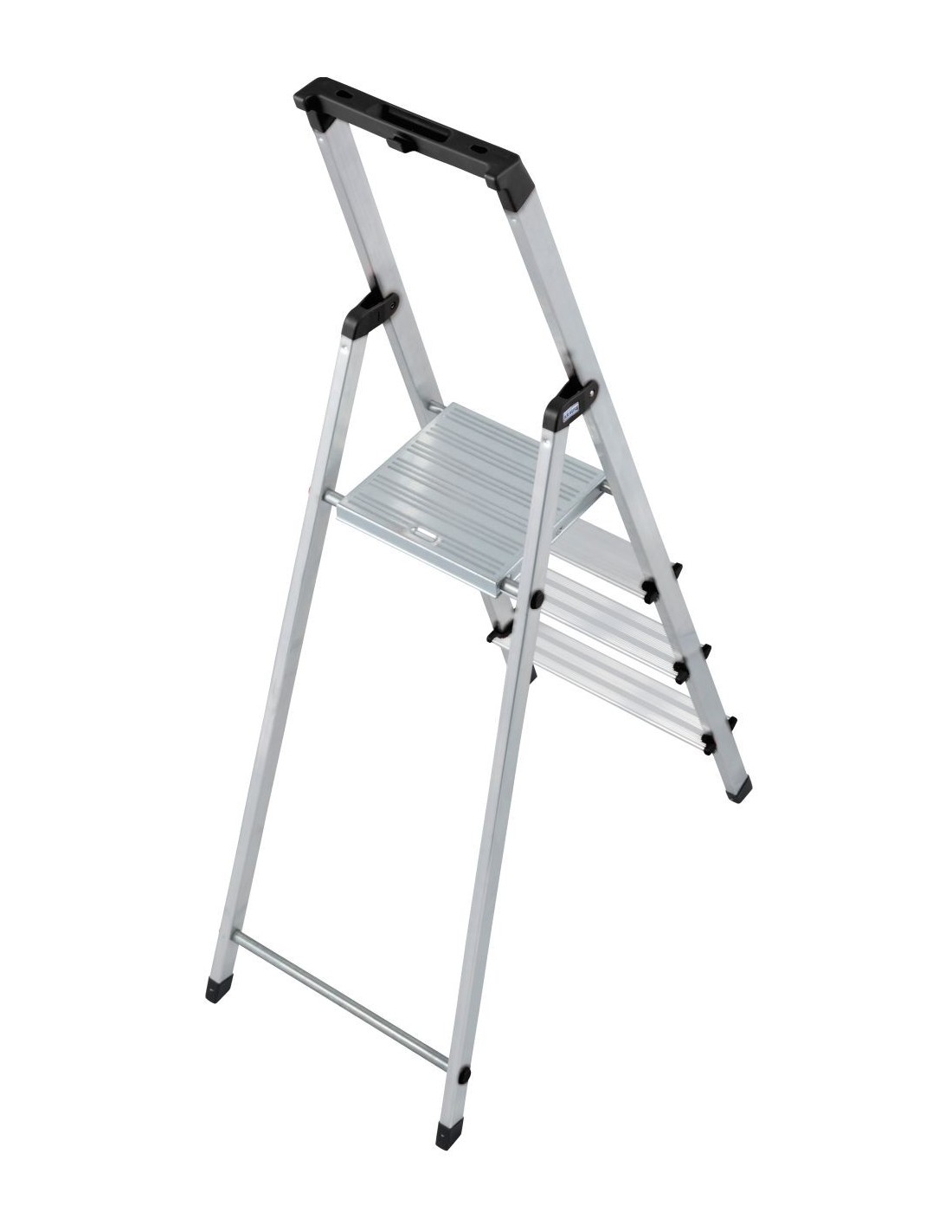 Stabil és praktikus lépcsőfokos állólétra kisméretű tárolófelülettel és vödörtartóval a legkülönbözőbb beltéri munkákhoz.