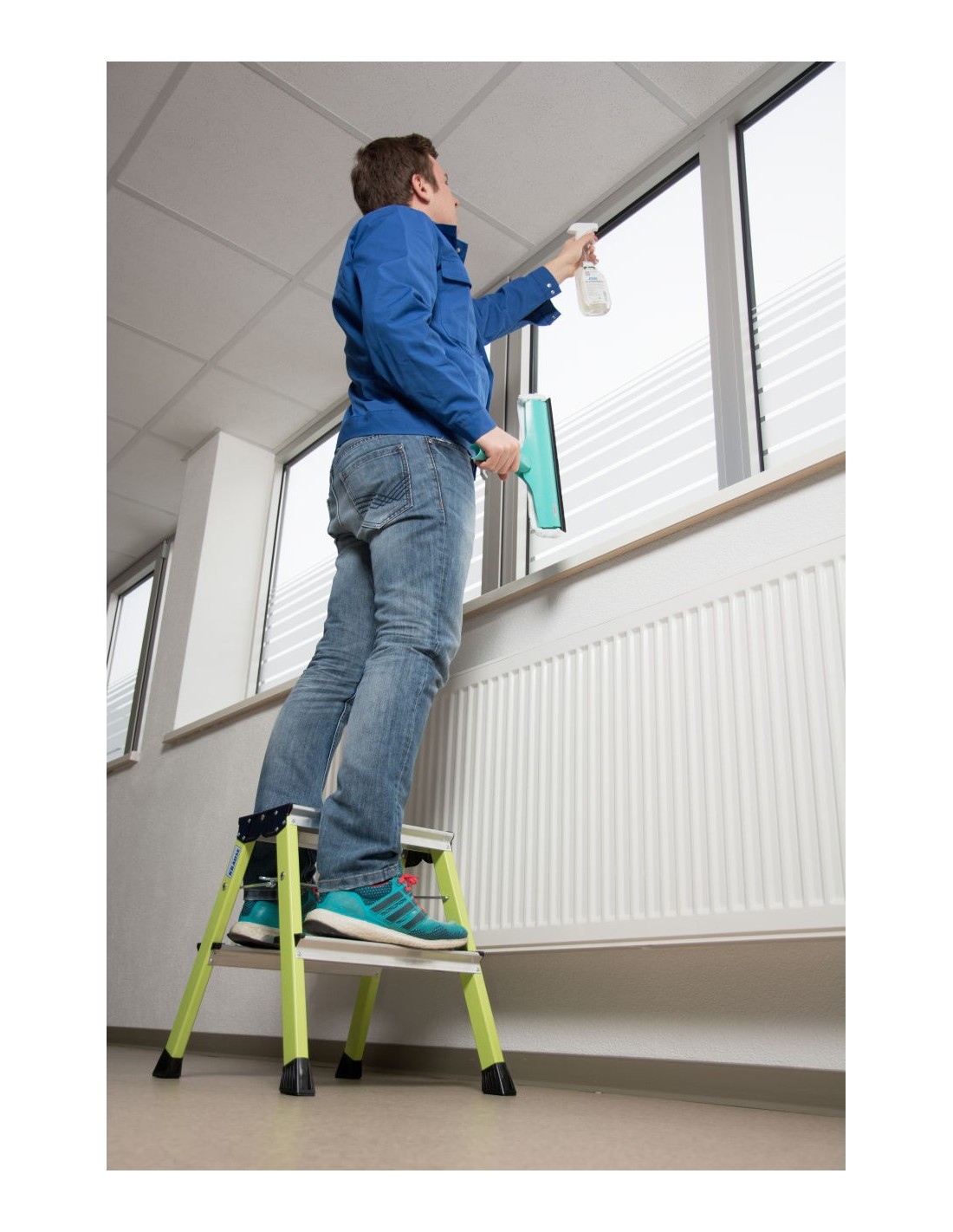 A gurítható, vidám színű alumínium fellépő akár 2,65 m-es munkamagasságig (3 fokos változat).
