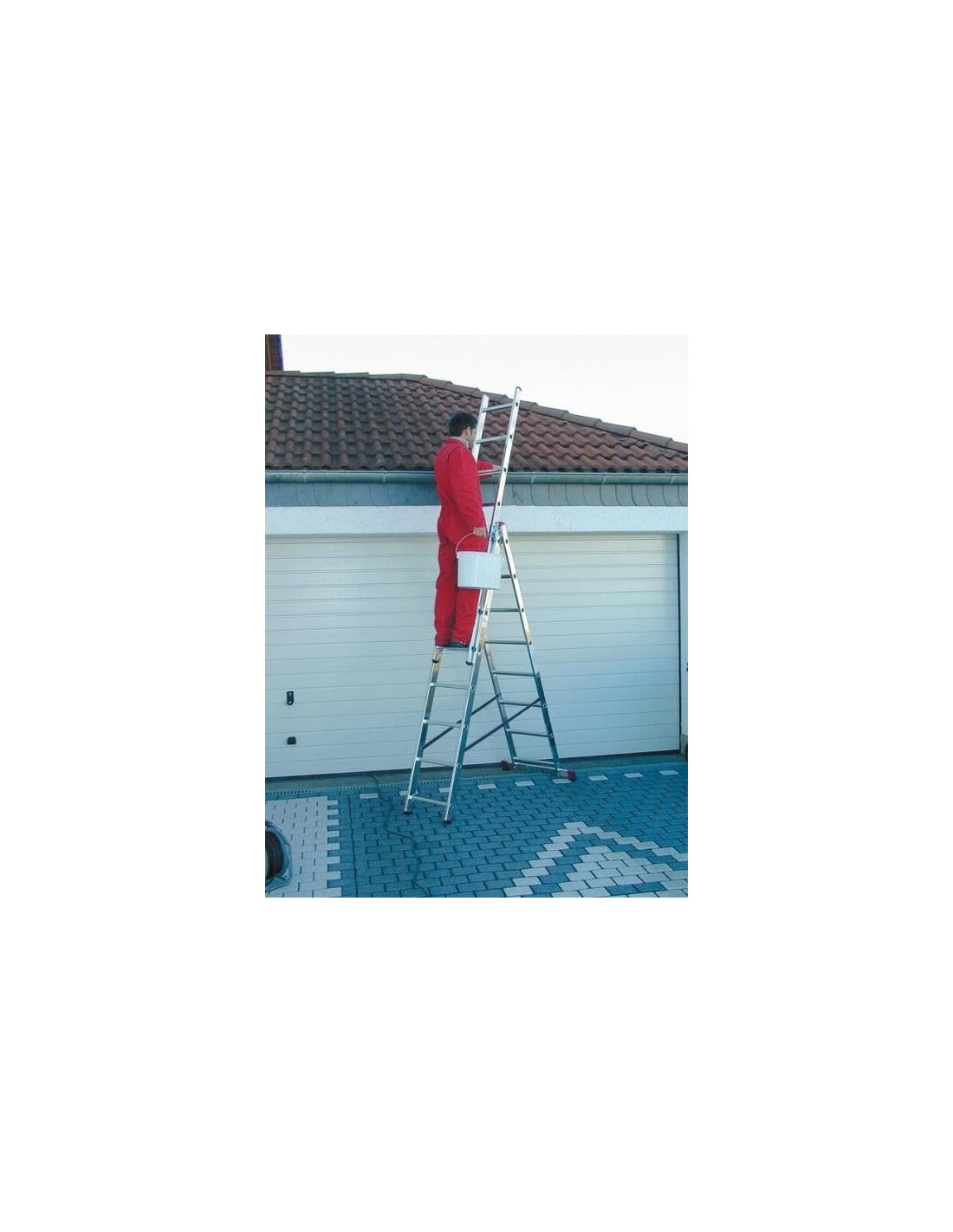 Háromrészes, sokoldalúan használható alumínium sokcélú létra. Használható támasztó-, álló- és tolólétraként is.