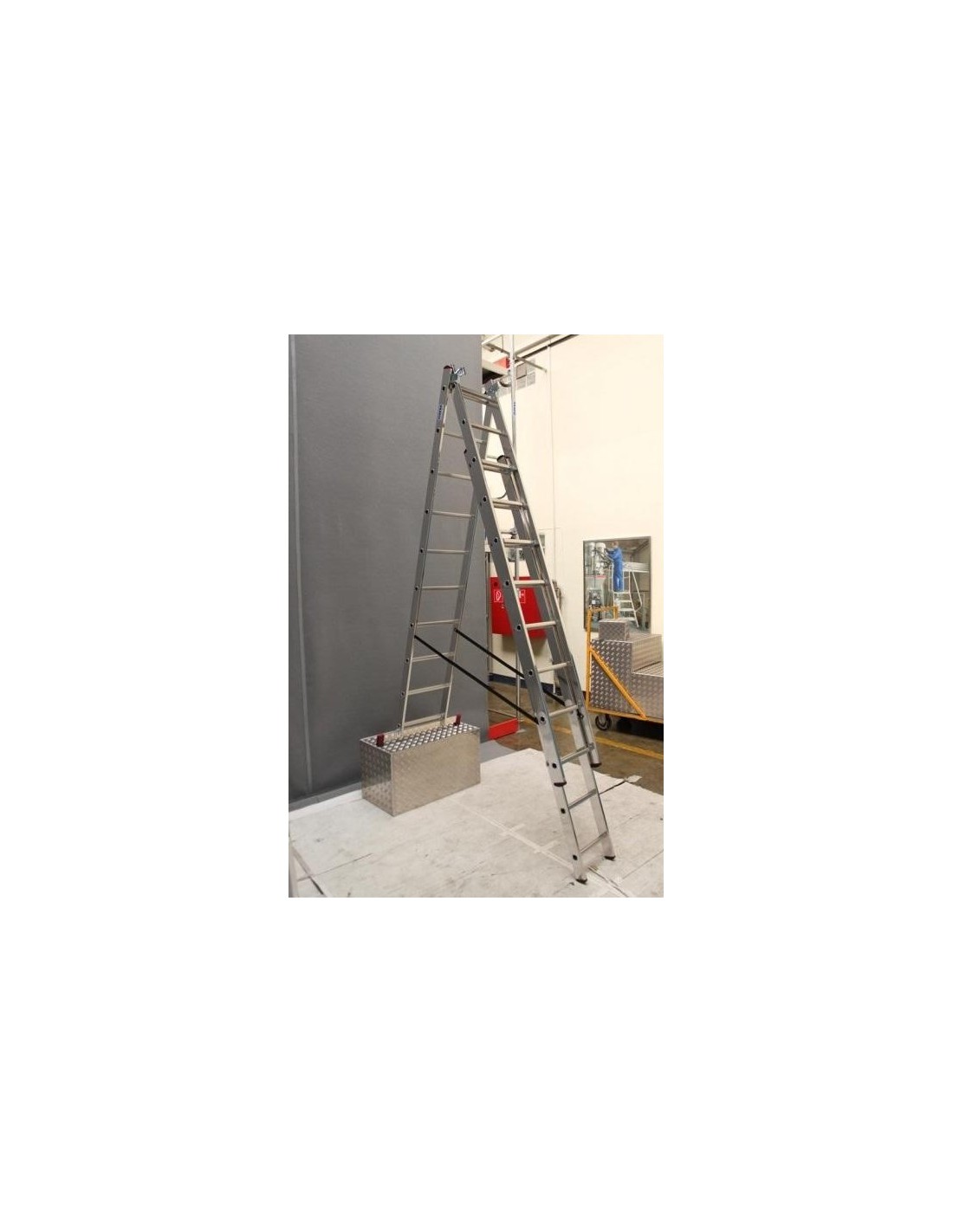 Háromrészes, sokoldalúan használható alumínium sokcélú létra. Használható támasztó-, álló- és tolólétraként is.