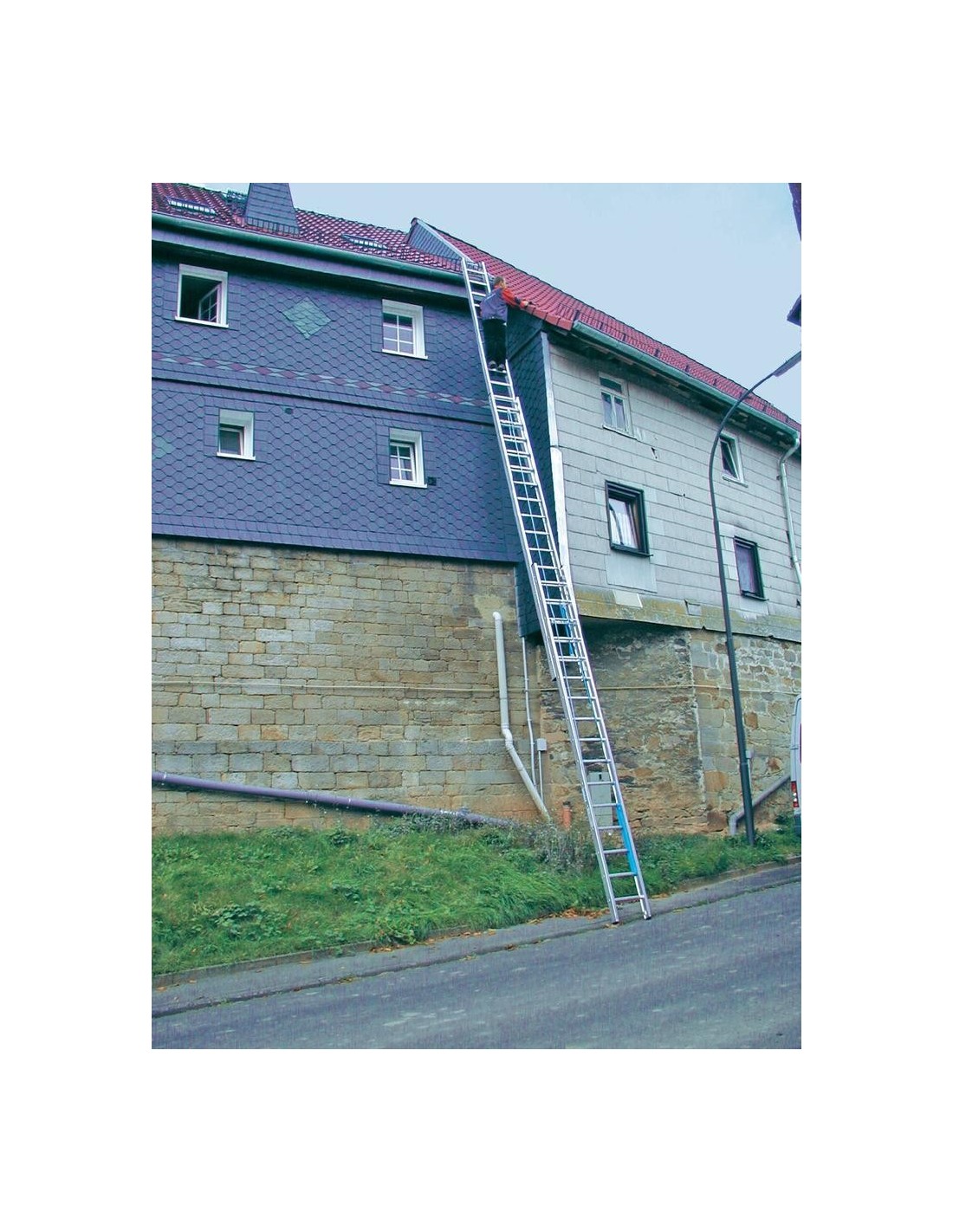 Háromrészes húzóköteles alumínium létra nagy magasságban történő munkavégzéshez.
