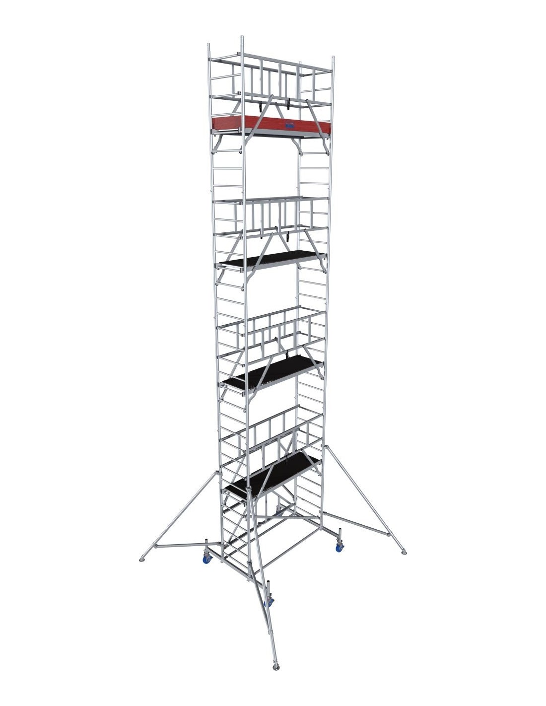 A nagy szilárdságú acél kitámasztók 3,80 m munkamagasságtól optimális stabilitást biztosítanak