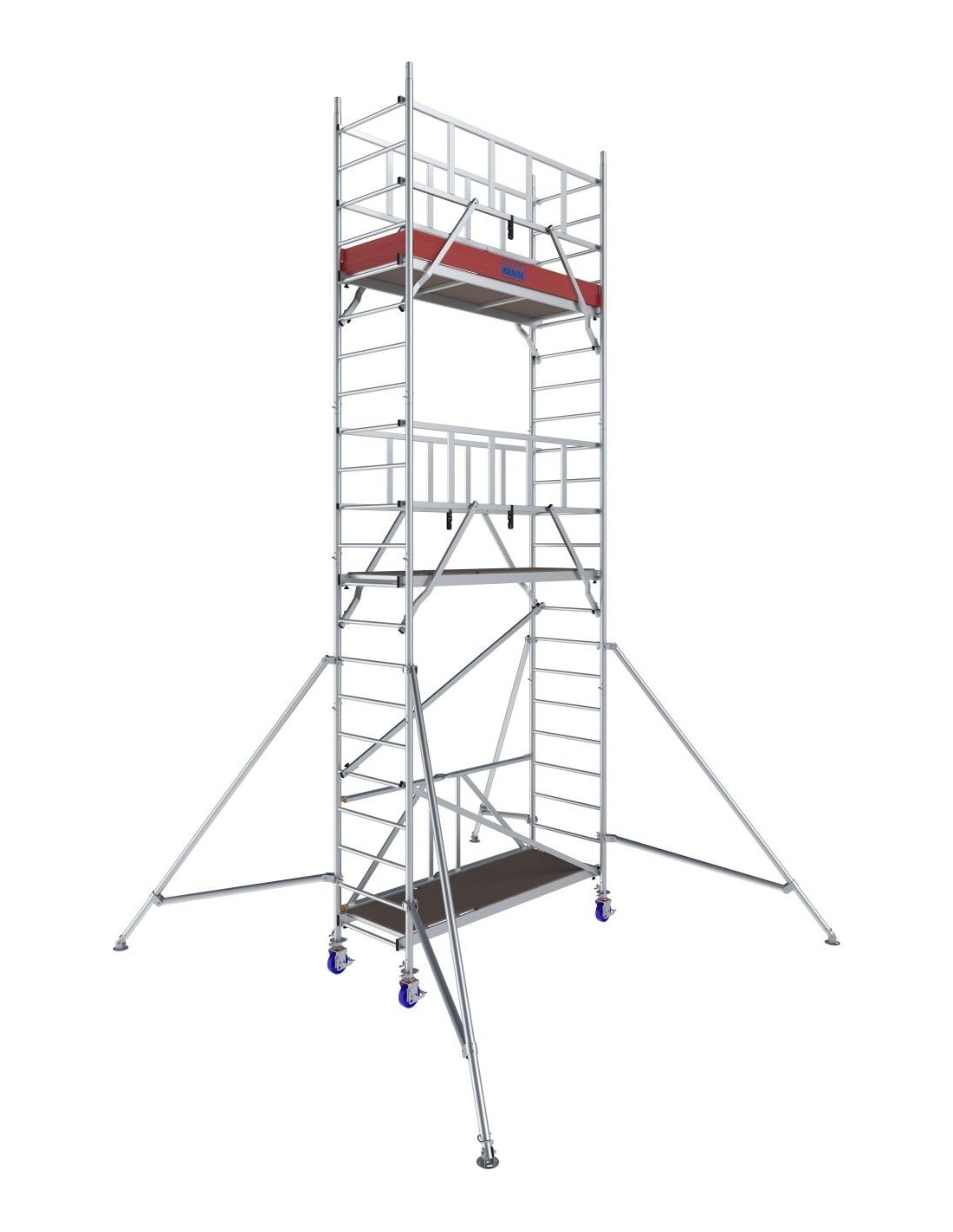 Az egyszerűen felszerelhető kitámasztók 3,70 m munkamagasságtól fokozott stabilitást biztosítanak