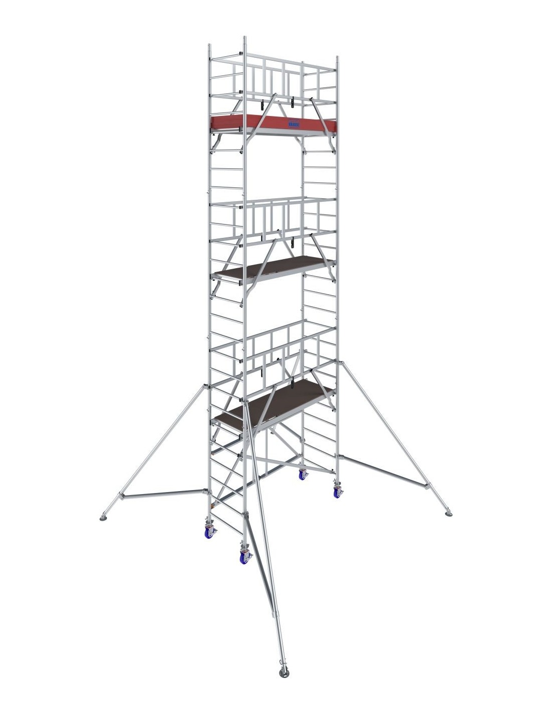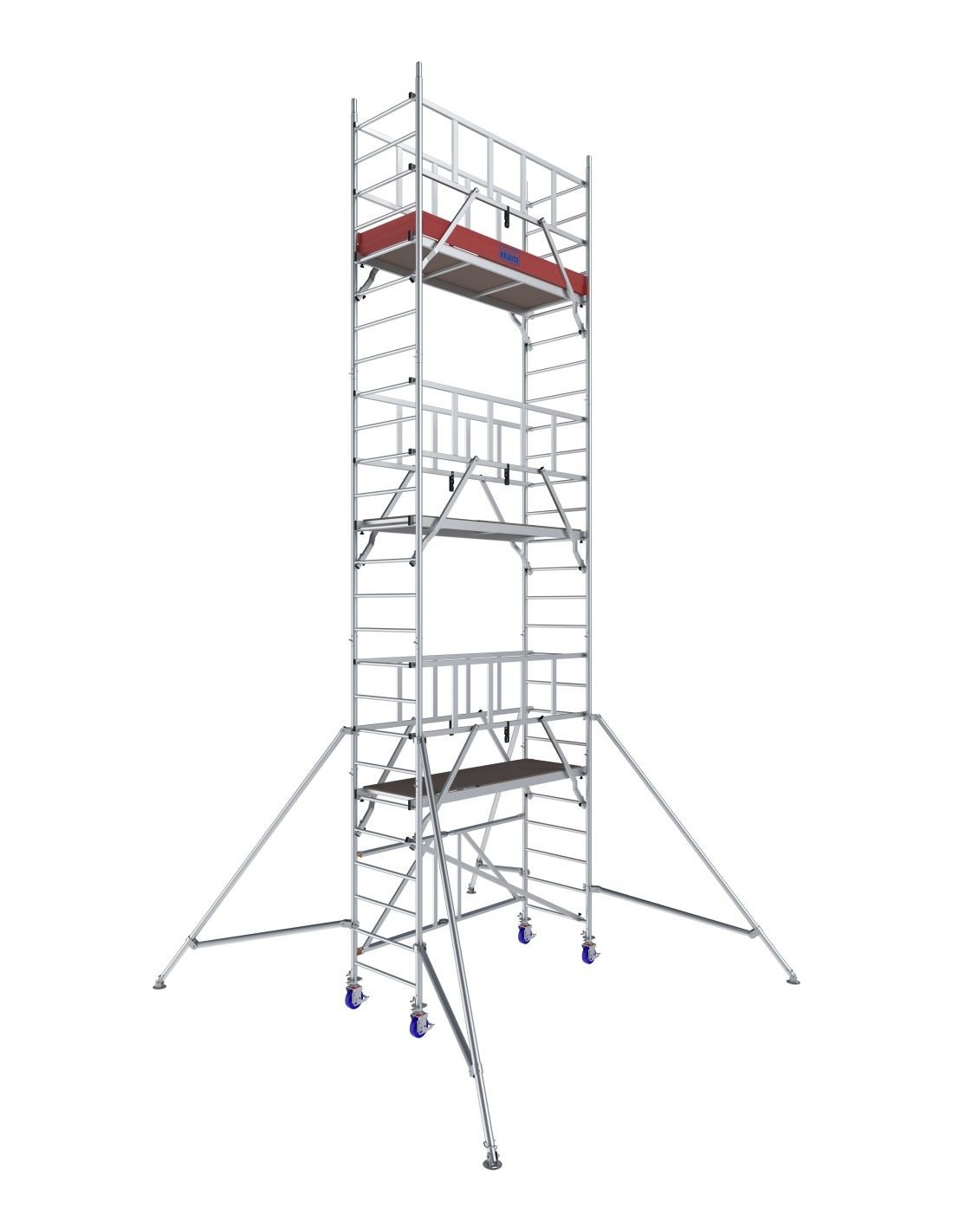 Az egyszerűen felszerelhető kitámasztók 3,70 m munkamagasságtól fokozott stabilitást biztosítanak