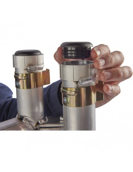 Az összecsukható keret a robusztus reteszelőgombjával könnyen kezelhető fél kézzel: rögzítés és kiengedés egyetlen kattintással.
