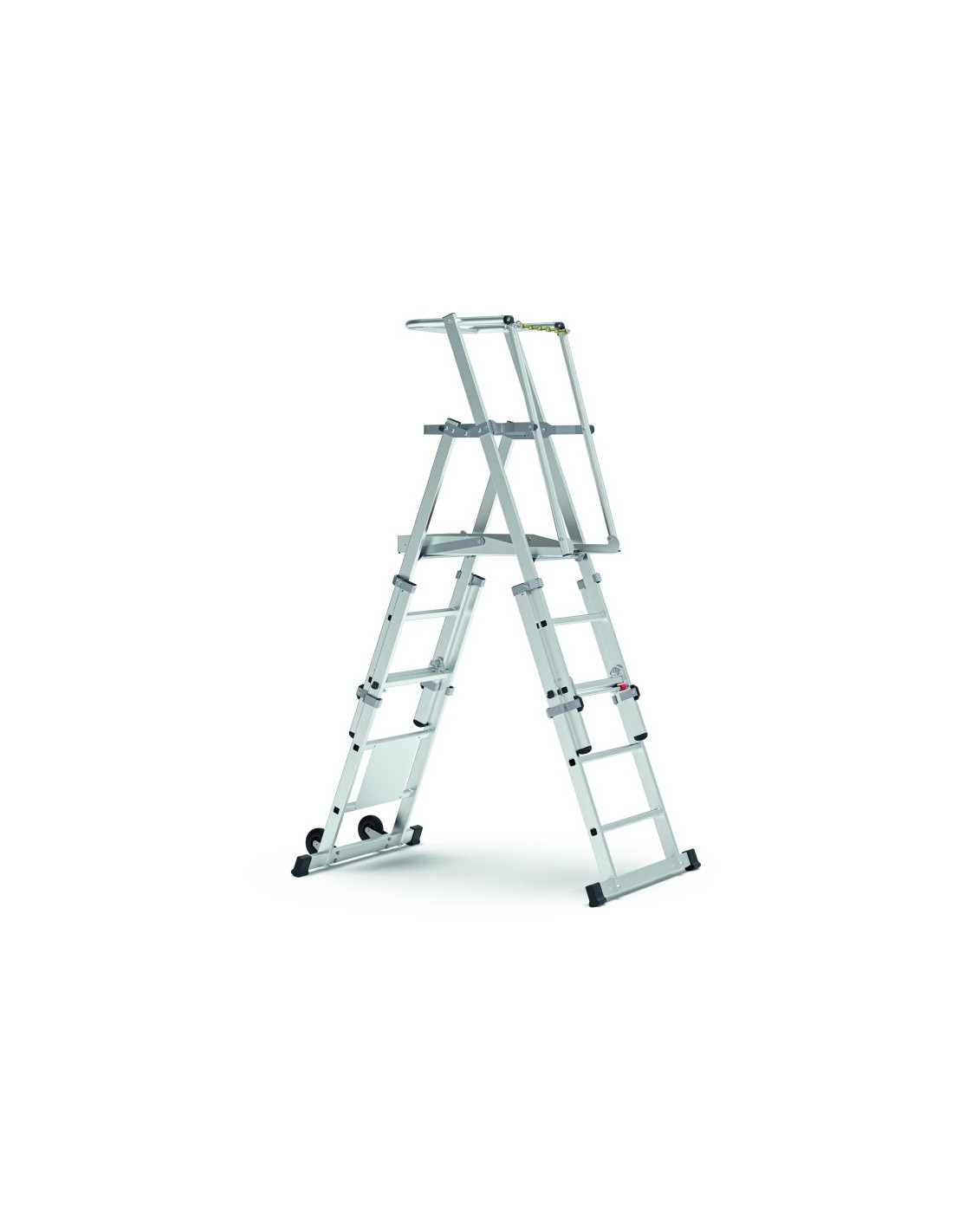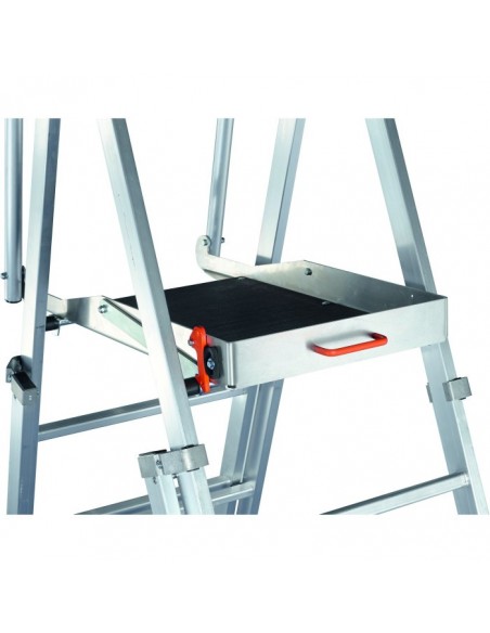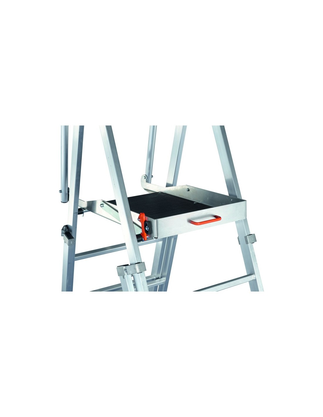 Állítható magasságú dobogó nagy állófelülettel. körbefutó korláttal a biztonságos és kényelmes állásért.