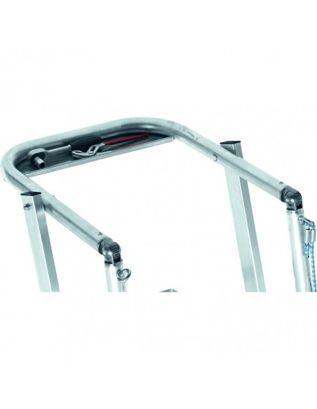 Nagy állófelület 665 x 440 mm hétszeresen enyvezett lemezből, korláttal és térdléccel maximális munkabiztonságot és kényelmes állást szavatol.